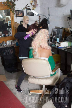 ![]() Posing next to Jerry's truck during the Wig Shoot "Another boring office Christmas Party" (VOGUE Italia) | ![]() BTS "Melissa and Gabija celebrating Christmas" (VOGUE Italia) with Jerry (Thomas H.P. Jerusalem) at the Bat Cave Studios, St Charles, IL | ![]() Staging for Gabija and me by Cyndi Piotrowski (Hair) and Julia Simone (MUA) during the "Melissa and Gabija celebrating Christmas" Wig Shoot (VOGUE Italia) |